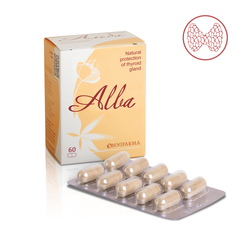 ALBA® est un support naturel pour la normalisation de la glande thyroïde en termes de volume et d’état fonctionnel. La prise pendant 6 mois ou plus conduit à la récupération de la structure et de la fonction de la glande thyroïde. ALBA® est le bon choix pour les personnes souffrant d’hyperthyroïdie, d’hypothyroïdie, de thyroïdite auto-immune, de goitre euthyroïdien et endémique, d’hyperplasie thyroïdienne.